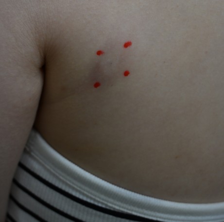 背部粉瘤切除(自訴有蟹足腫體質)(術後一個月)